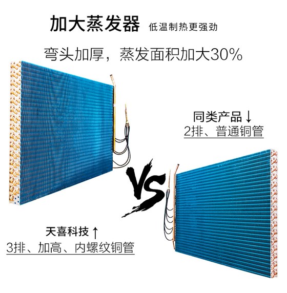 ●钛金蒸发器更耐久,提高了化霜能力,延长了使用寿命,同时提高了热效率